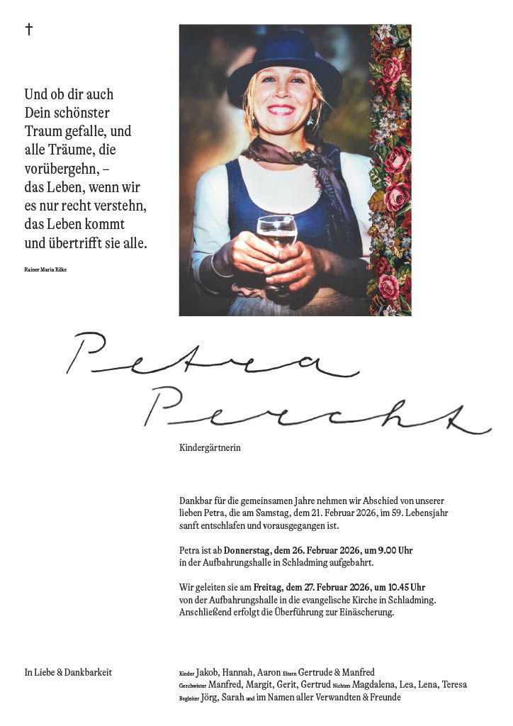 an Frau Petra Percht, die am 21. Februar 2026 verstarb