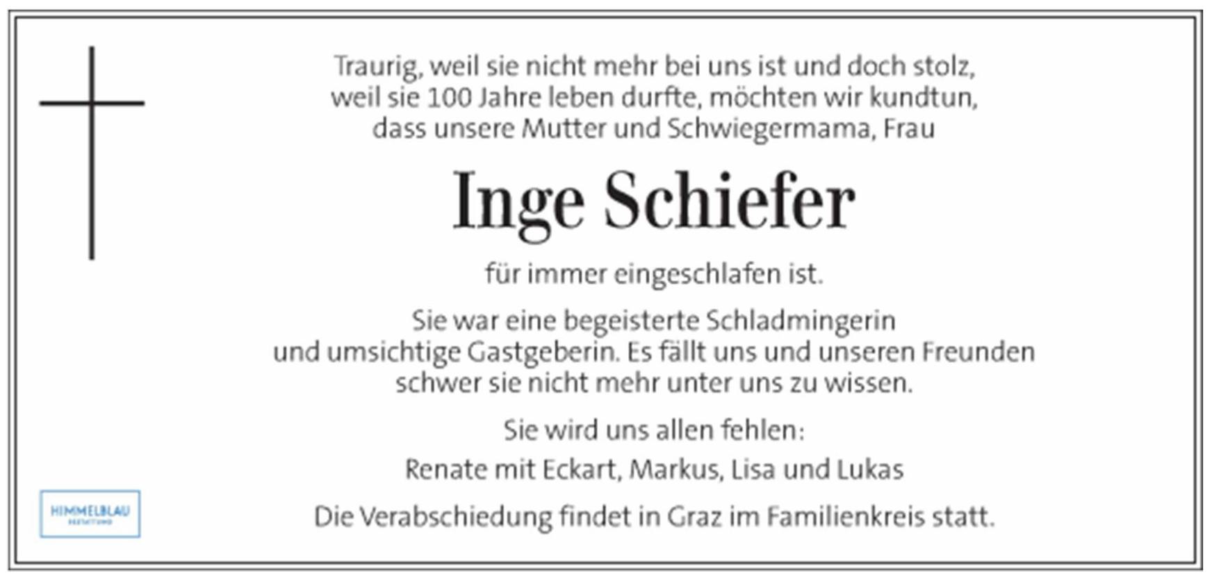 an Frau Inge Schiefer, die am 23. Februar 2026 verstarb