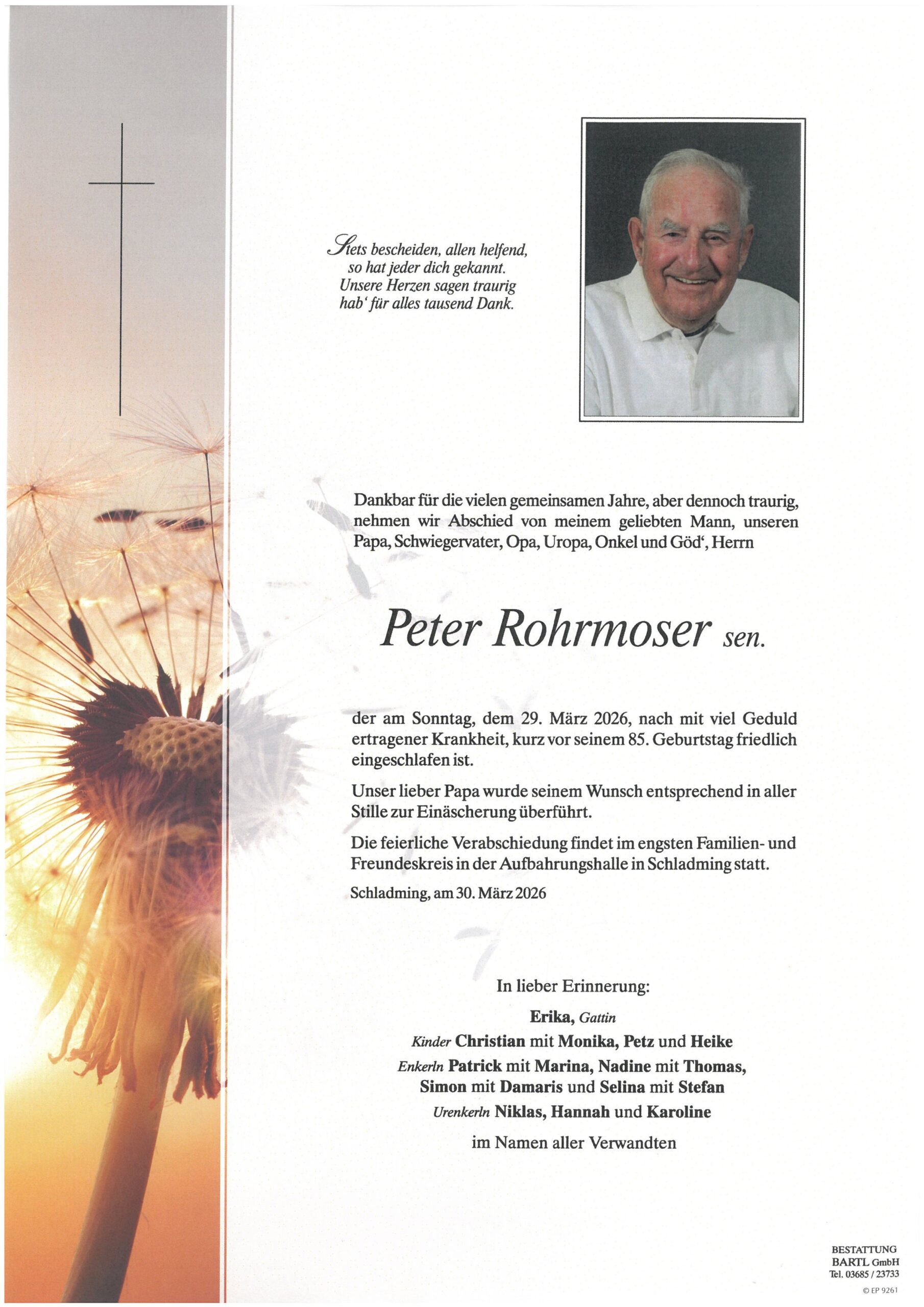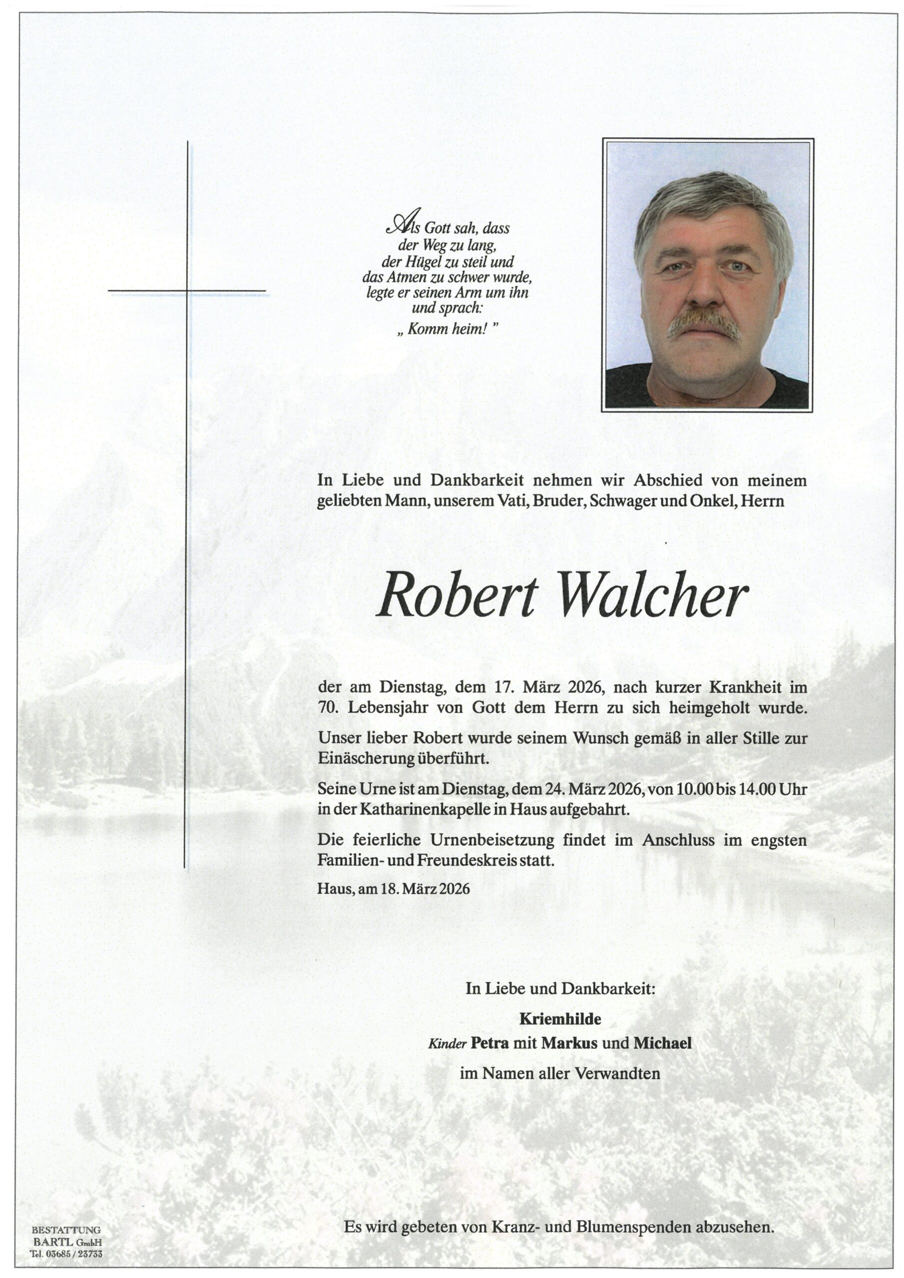 an Herrn Robert Walcher, der am 17. März 2026 verstarb