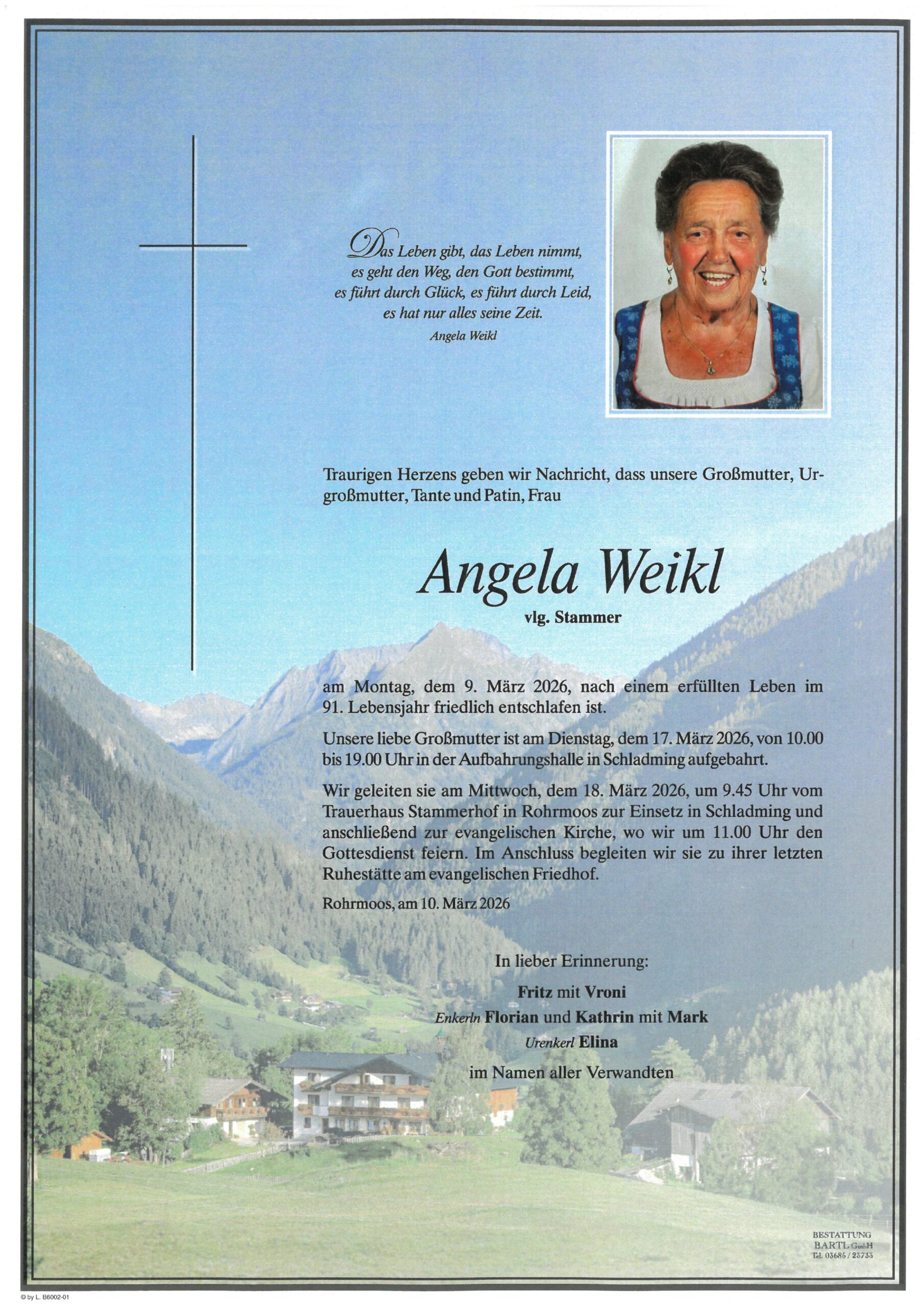 an Frau Angela Weikl, die am 09. März 2026 verstarb